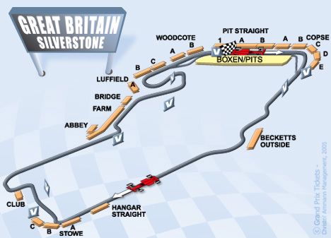 Der 5,141 km lange Kurs liegt auf einem stillgelegten Flugplatz, diese Tatsache macht die Strecke zu einer der schnellsten und längsten im Kalender. Der Kurs erlebte viele Änderungen und Layouts, ein radikaler Umbau fand 1991 statt, damals wurde der Priory-Luffield Komplex neu gebaut. Die besten Überholmöglichkeiten bieten die Stowe-Kurve, das Ende der Hangar Geraden, die Club-Kurve und das Ende der Vale Geraden.